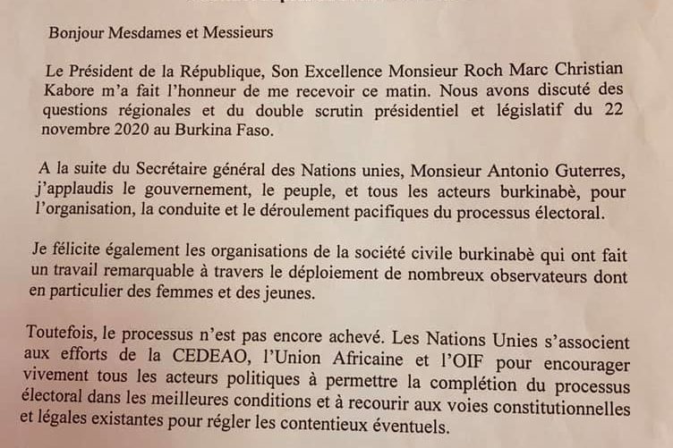 Ouagadougou, 25 novembre 2020. « Bonjour Mesdames et Messieurs Le président de…