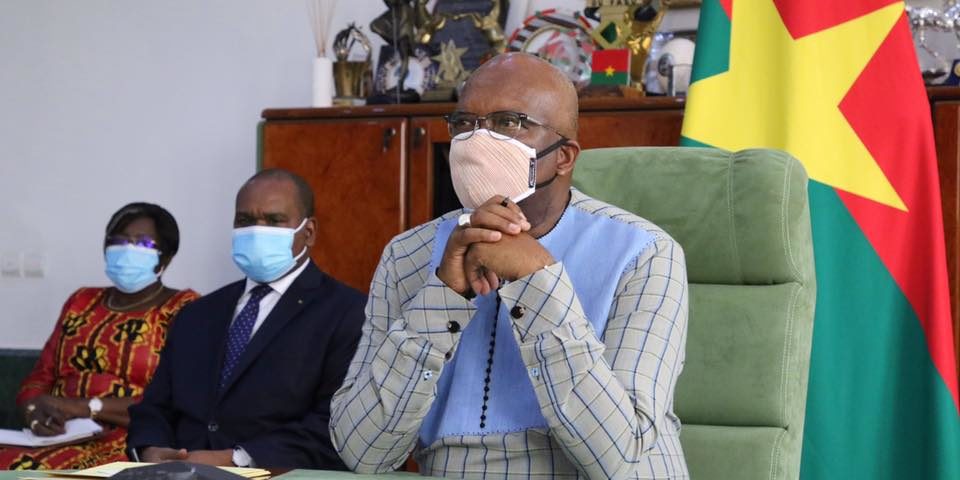 Les ministres des Affaires étrangères et de la Coopération Alpha Barry, de l’Intégration africaine et des Burkinabè de l’extérieur Paul Robert Tiendrébéogo, de la Santé Claudine Lougué, de l’Economie, des Finances et du Développement Lassané Kaboré, assistent le président du Faso à cette rencontre numérique.