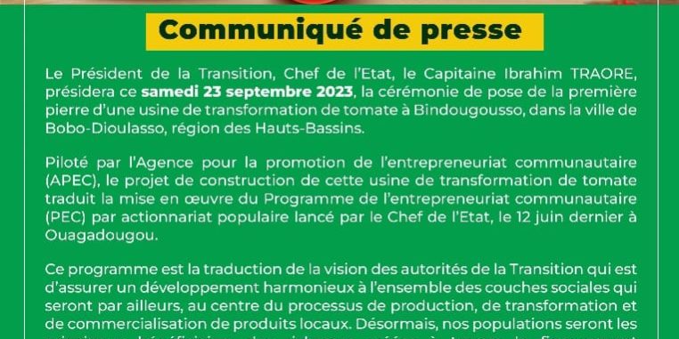 Entreprenariat communautaire : Bientôt une usine de transformation de tomate à Bobo-Dioulasso.