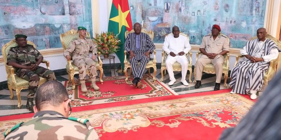 (Ouagadougou, 19 août 2019). Le président du Faso, Roch Marc Christian Kaboré, président en exercice du G5 Sahel, a accordé en fin de matinée, une audience au commandant sortant de la Force conjointe du G5 Sahel, le général Hanena Ould Sidi de Mauritanie. Il était accompagné de son successeur, le général nigérien Oumarou Namata Gazama.